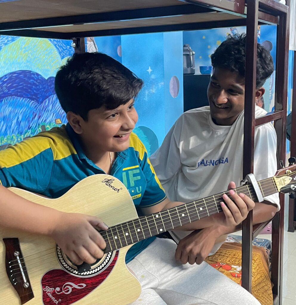 We have coaching for Kickboxing, Football, dance, music, etc. for our hostellers. In addition to these, we have Yoga session daily in the morning to foster mental and emotional well-being of each and every child residing in our hostels.